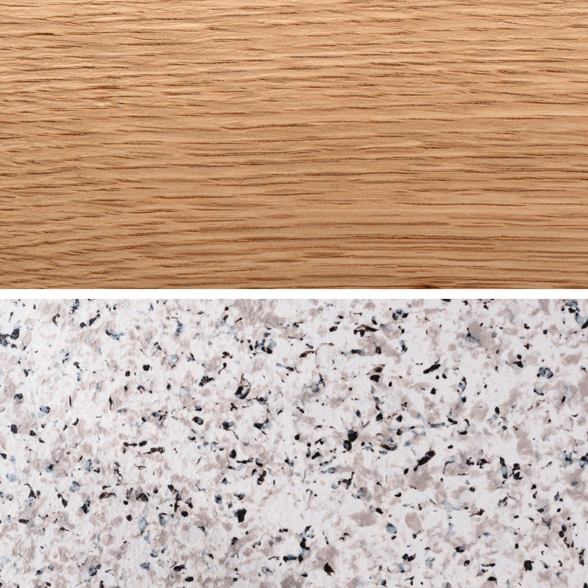 ●木目調の天板とテラゾー柄脚部の異素材デザインが、空間に程よいアクセントを加えます。