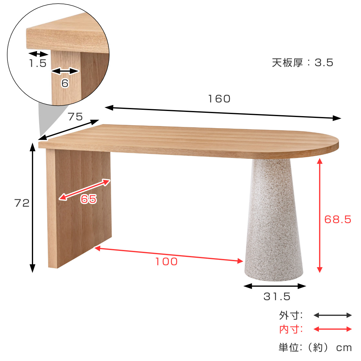 約 幅160×奥行75×高さ72(cm)