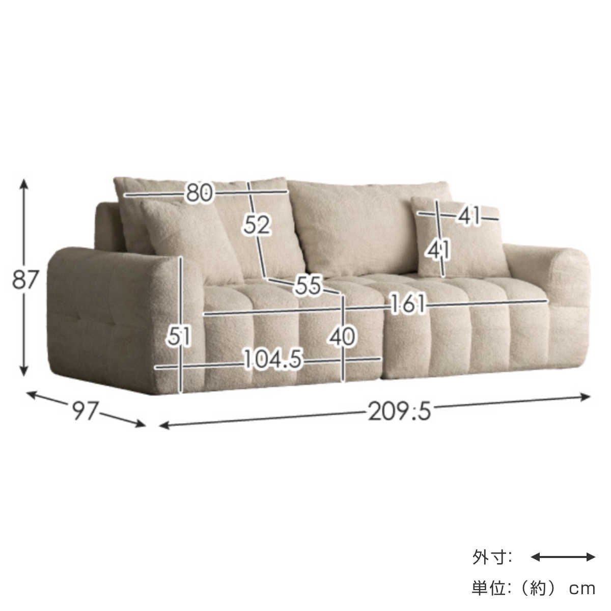 | サイズ | 約 幅209.5×奥行97×高さ87(cm) 座面高:約 44.5(cm) 座面サイズ:約 幅161×奥行55cm |