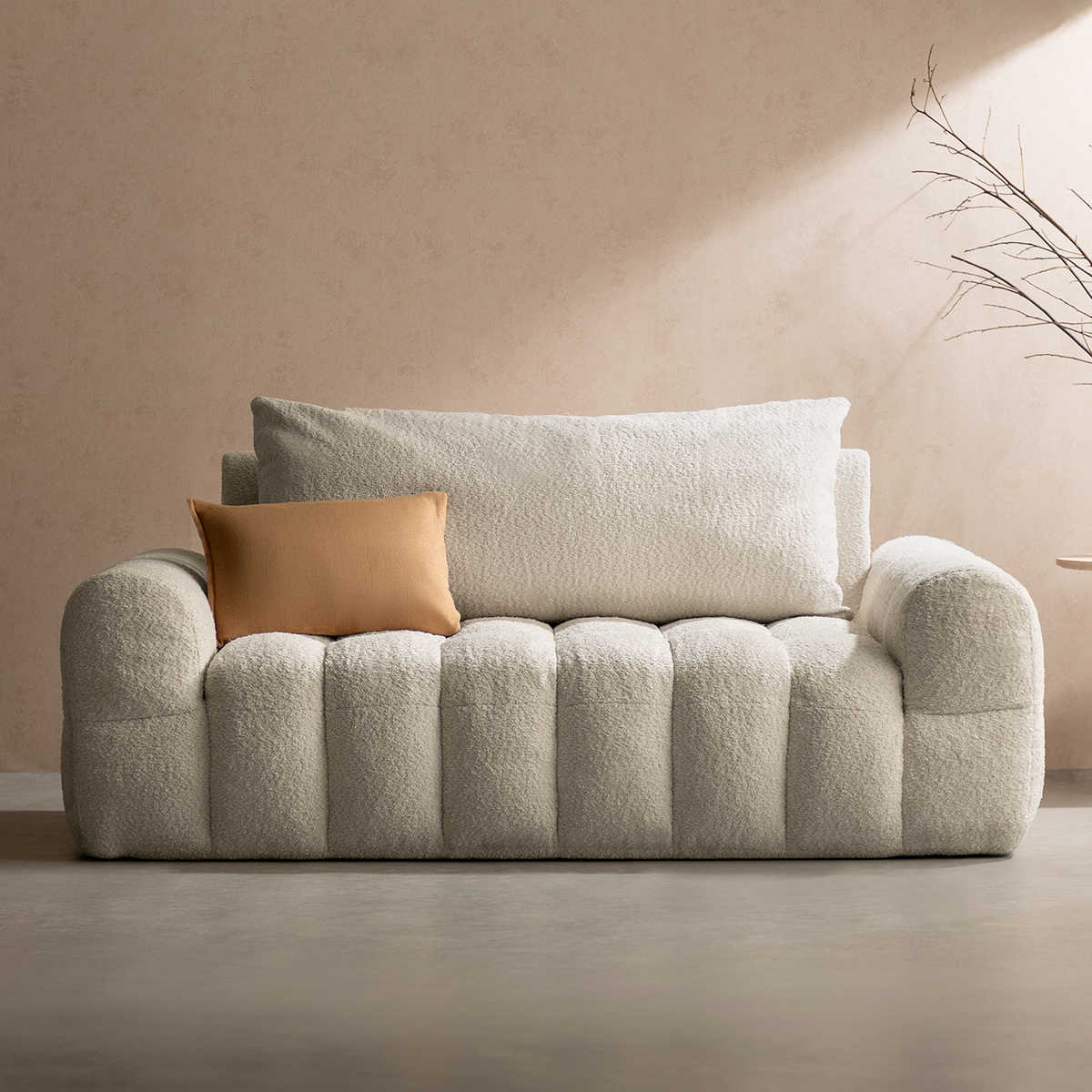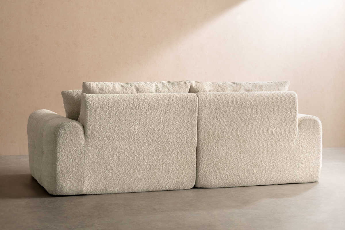 背面まで同じブークレ生地を使用した仕上がりで、どの角度から見ても美しいデザイン。お部屋の間仕切りとしてもお使いいただけます。