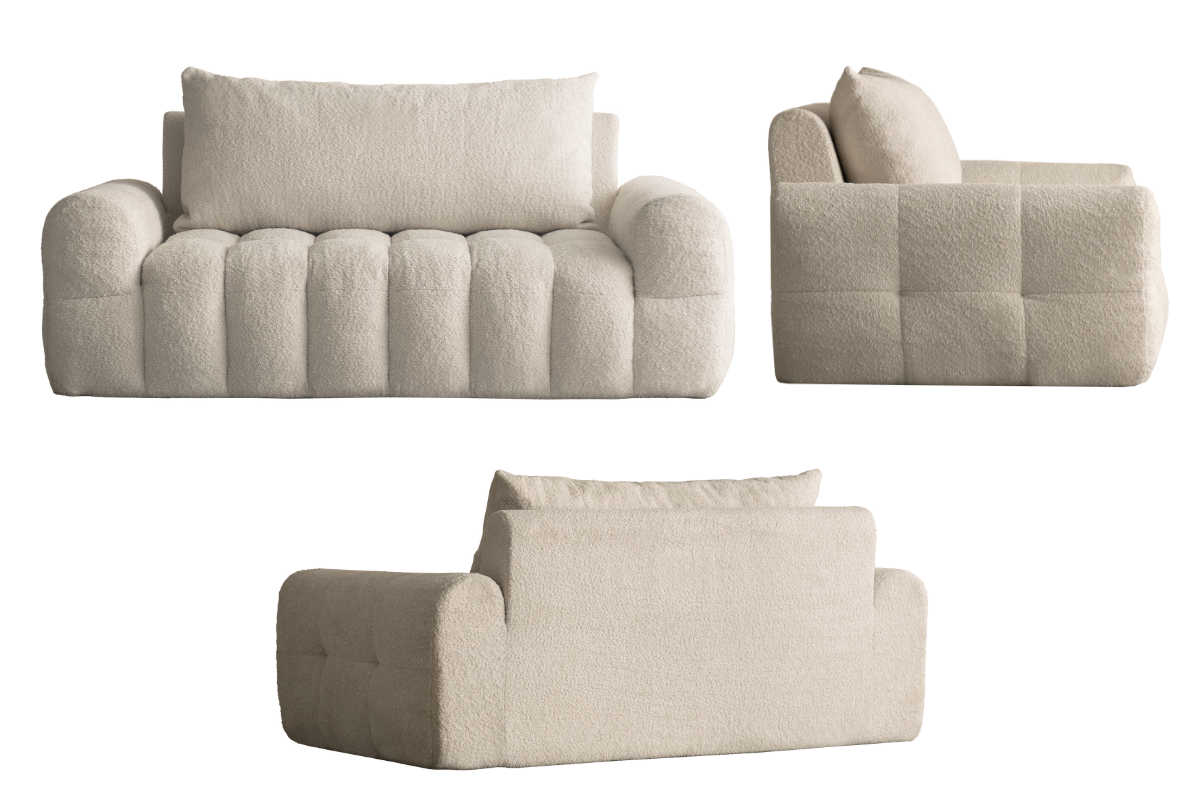 ●ポケットコイルを使用した贅沢な座り心地と、ふわふわ・もこもこ感が魅力のブークレ生地を組み合わせたソファです。