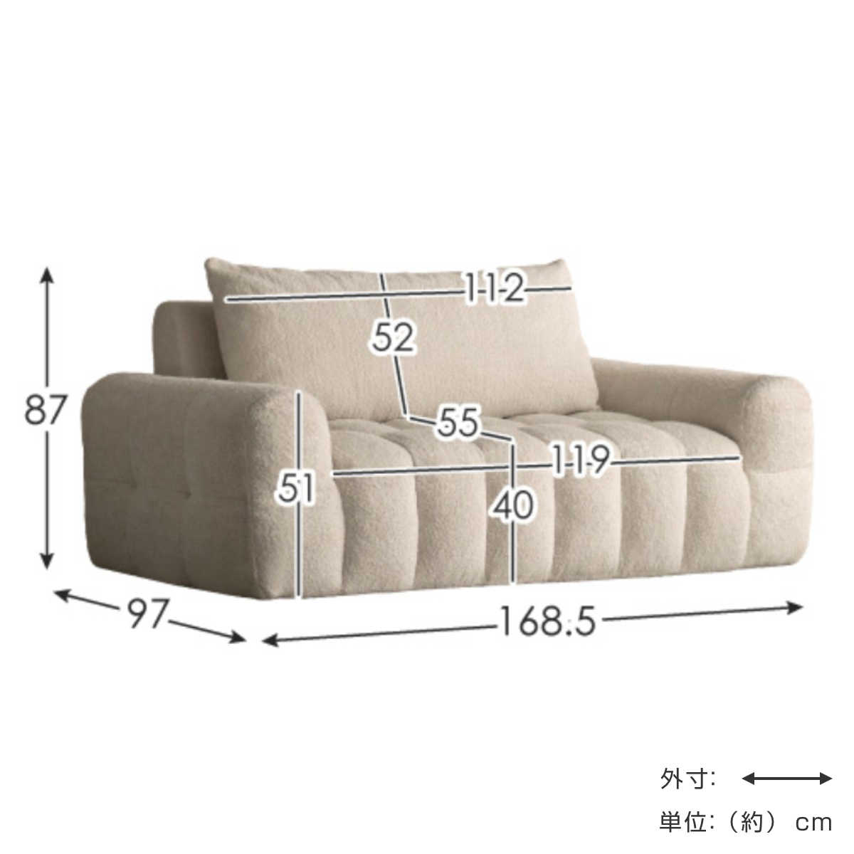 座面サイズ:約 幅119×奥行55cm