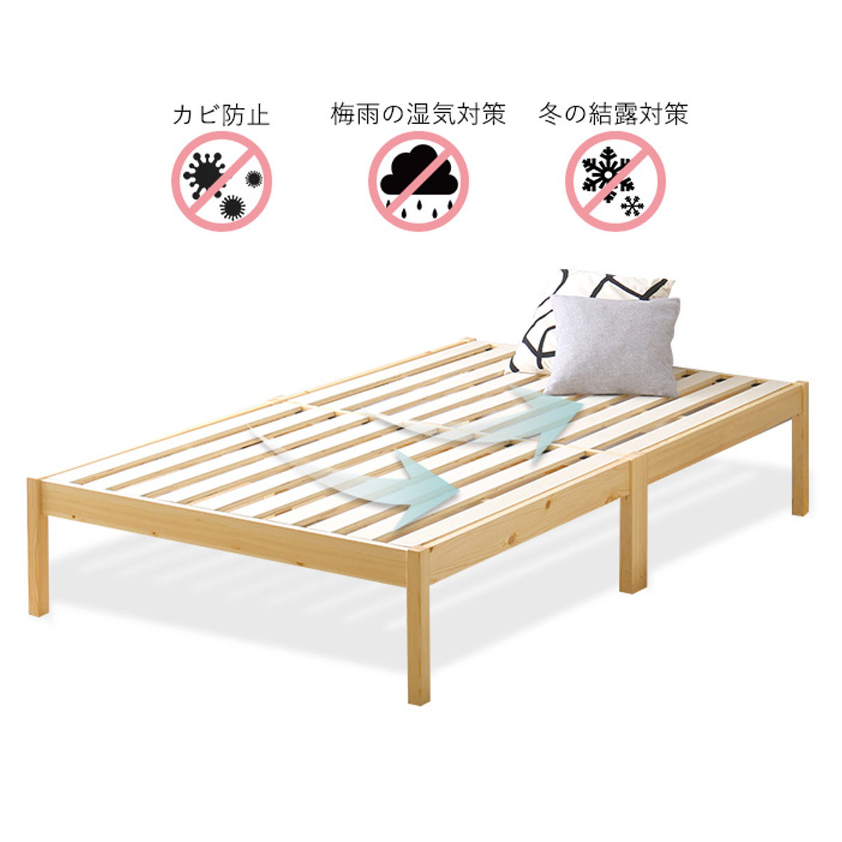 | 材質 | フレーム・脚部:天然木パイン(ラッカー塗装) すのこ:LVL積層合板 |
