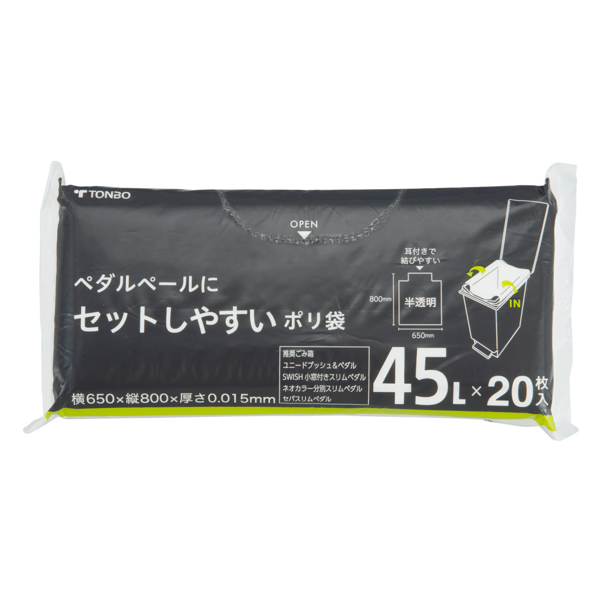 ペダルペールにセットしやすいポリ袋45L●UNEEDのゴミ箱、ペダルペールにちょうどよいサイズのゴミ袋です。