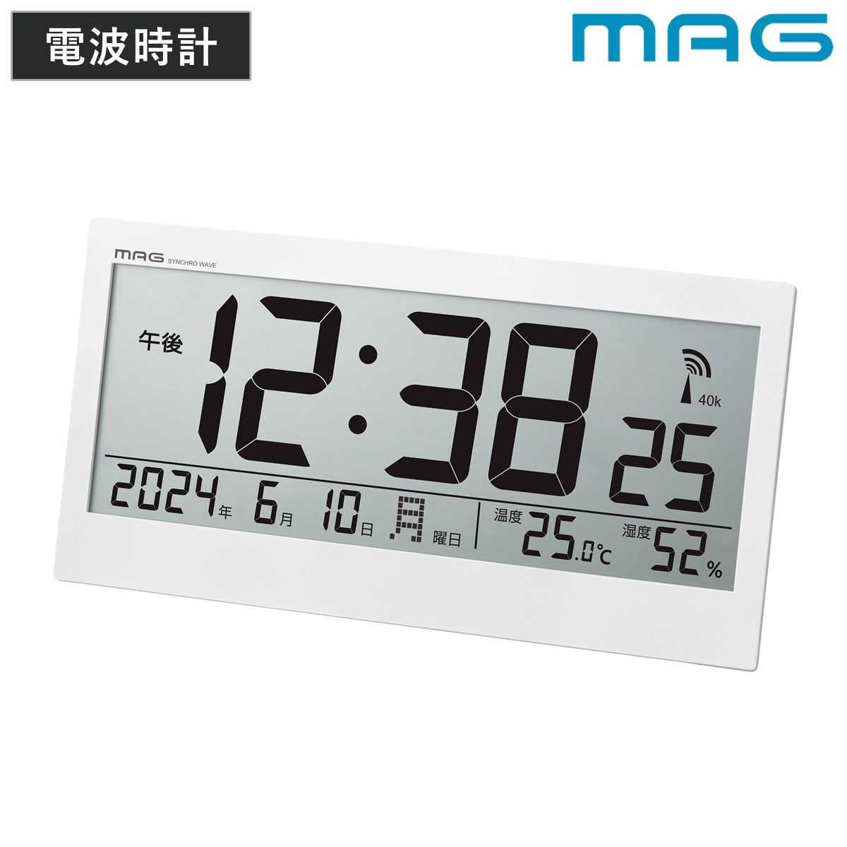 電波時計 デジタル 温湿度計付き カレンダー付き 置き掛け兼用 ビュースクエア MAG ( 時計 壁掛け時計 掛時計 置き時計 置時計 )