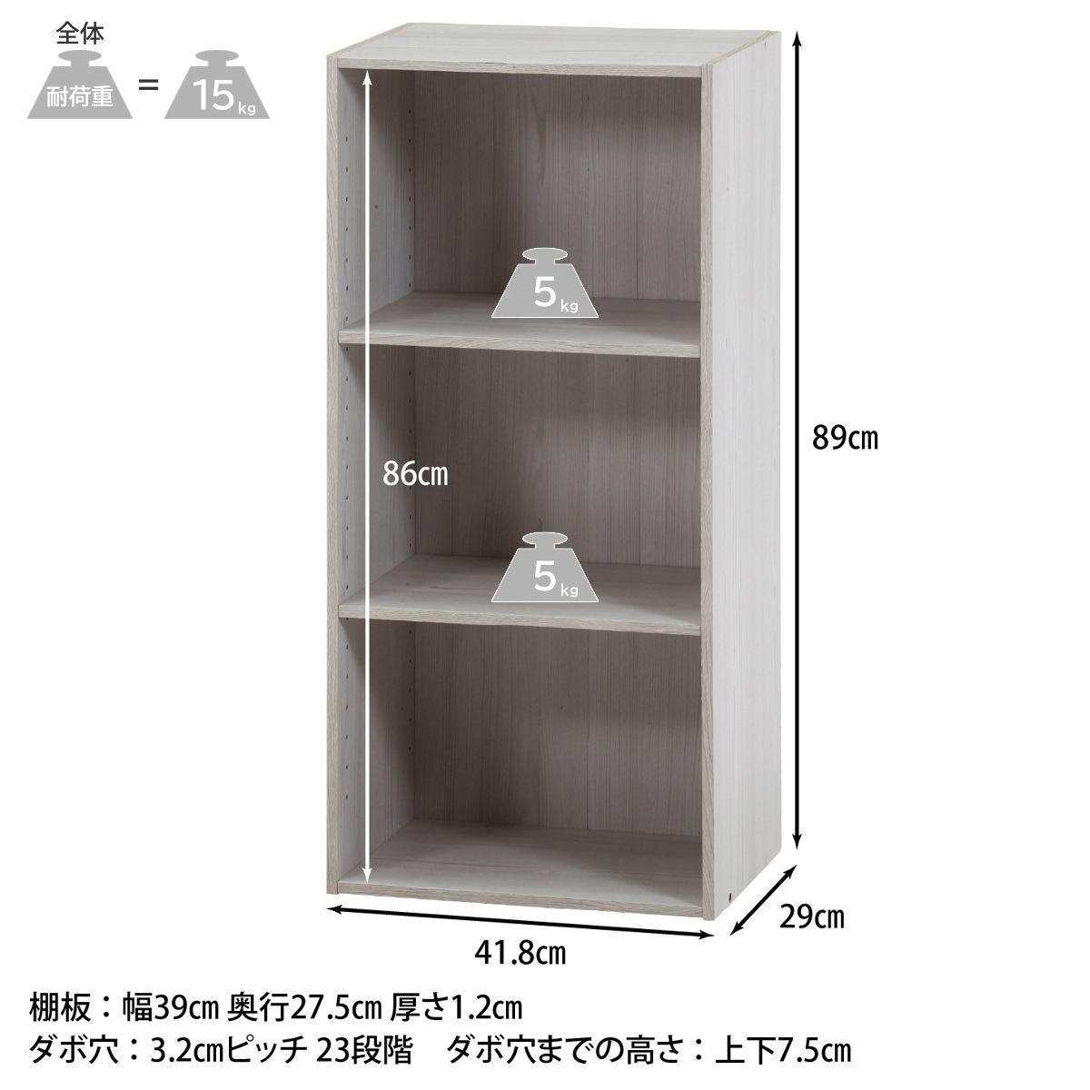| 棚板1枚あたり耐荷重 | 5kg |