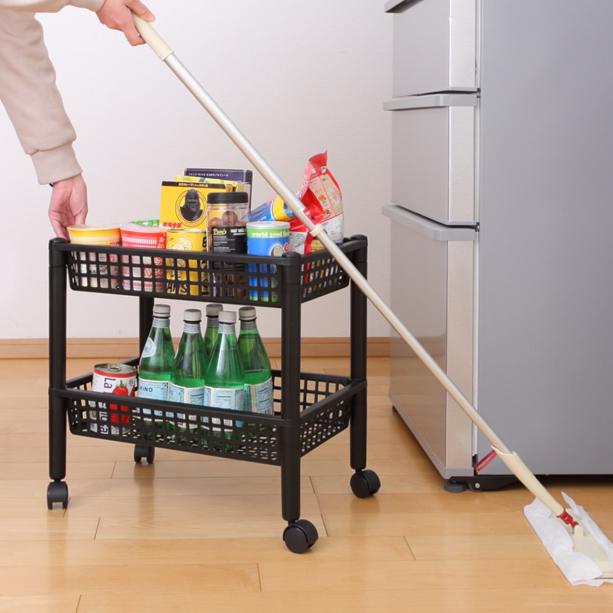キャスター付きなのでお掃除の際のちょっとした移動もスムーズ。必要な時に必要な場所へまとめて一緒に持ち運べるので便利にお使いいただけます。