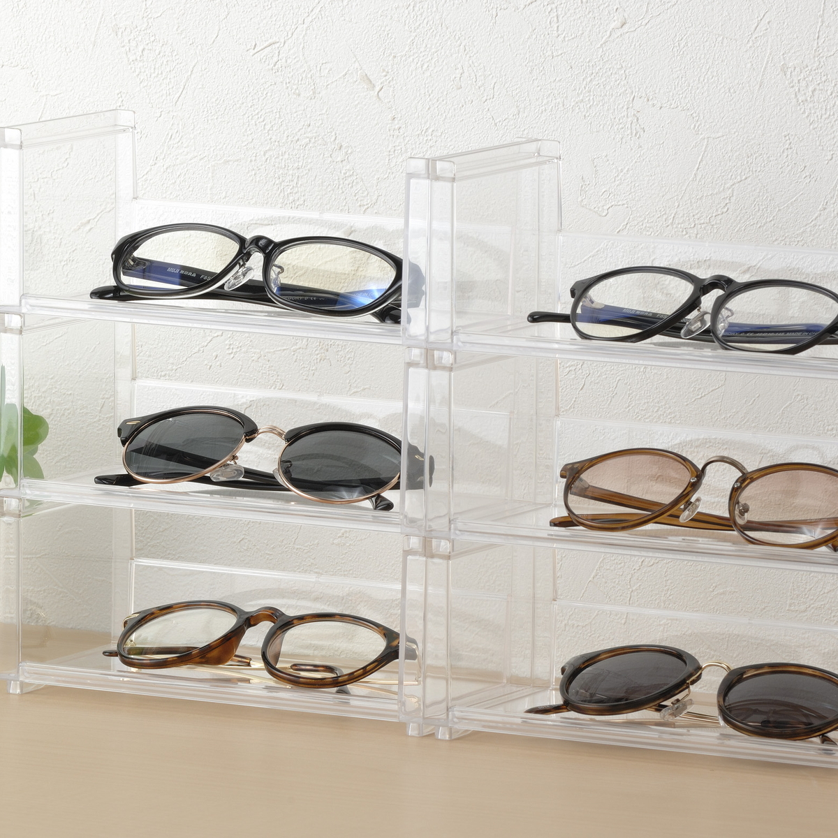 フィギュアだけでなく、アクセサリーや雑貨、眼鏡などの収納にも活躍します。「隠す収納」ではなく「見せる収納」で、空間をおしゃれに演出できます。