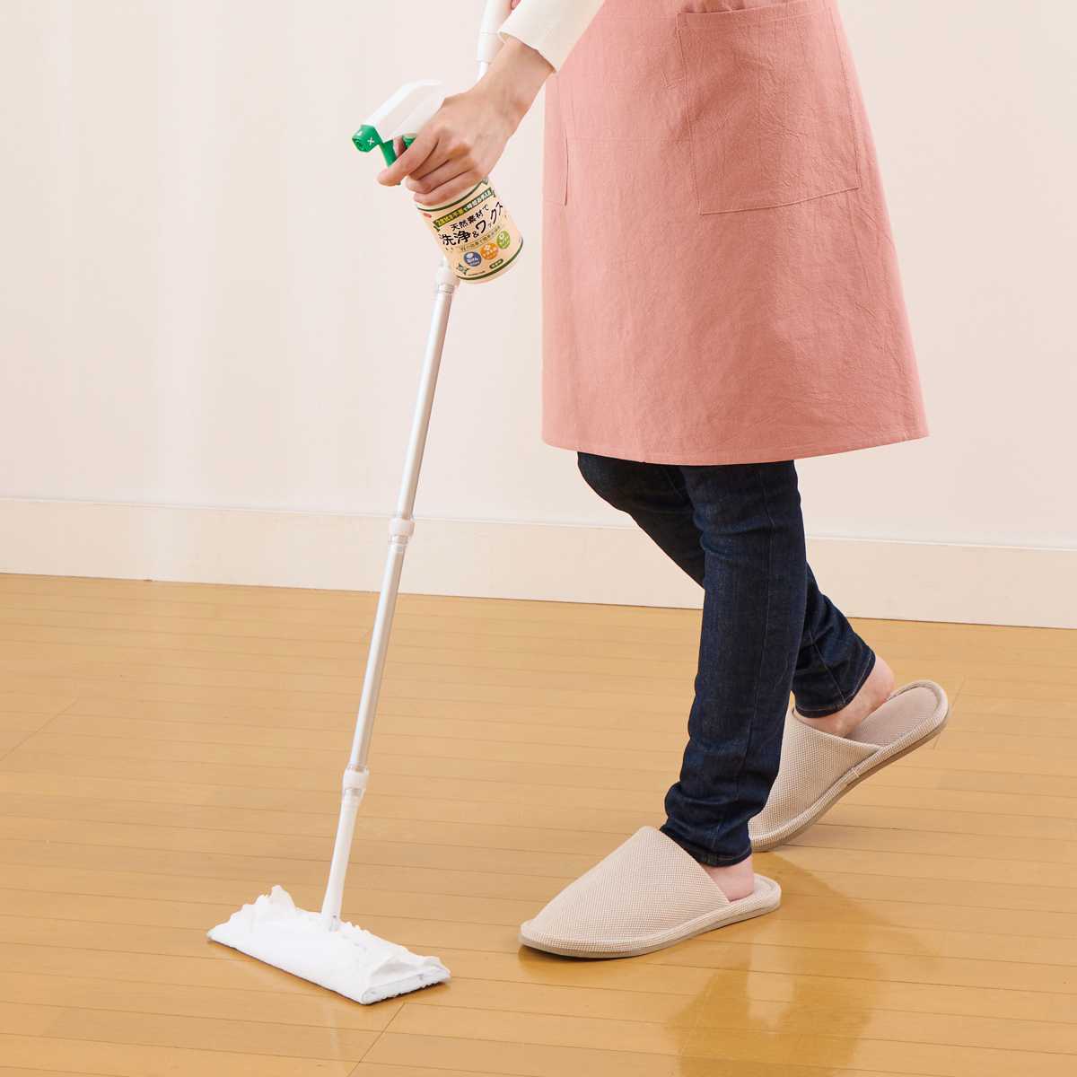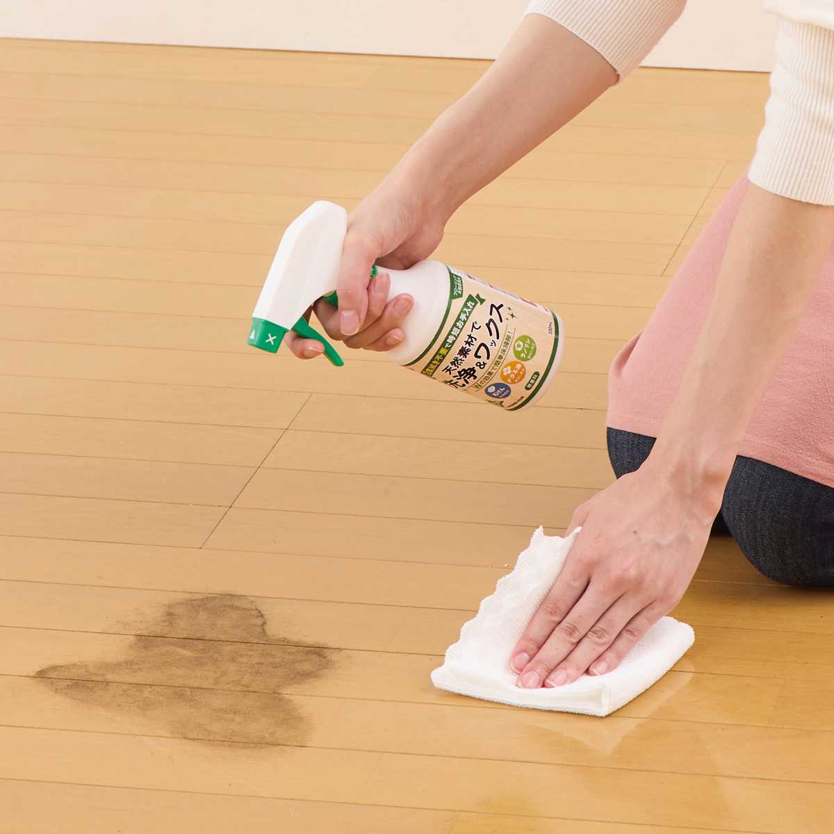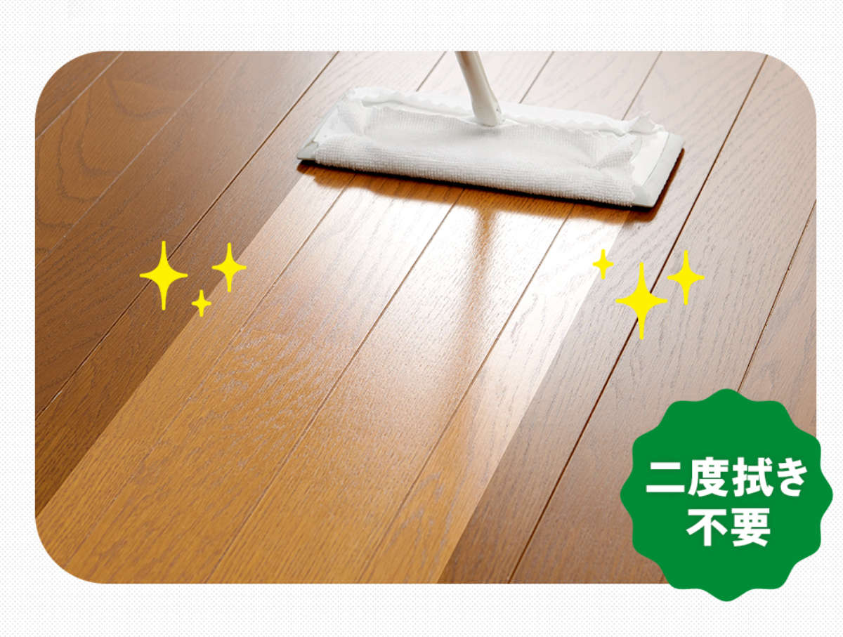 スプレーして汚れを拭き取るだけで、洗浄とツヤ出しが同時にできるため、仕上げの拭き取りは不要です。毎日のお掃除でも負担にならず、床掃除がもっと手軽になります。