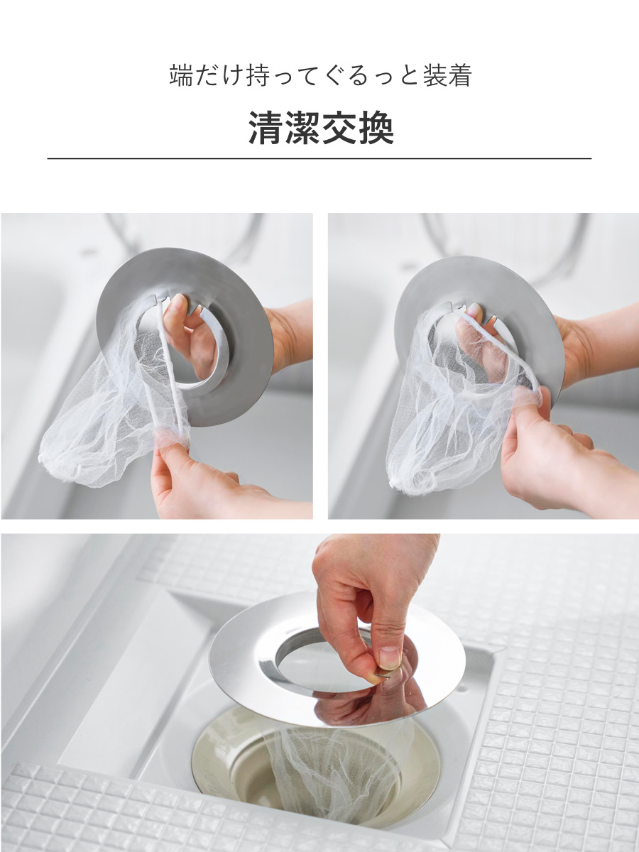 ●取っ手とネットの端だけを持って着脱できるので、衛生的で簡単に交換できます。