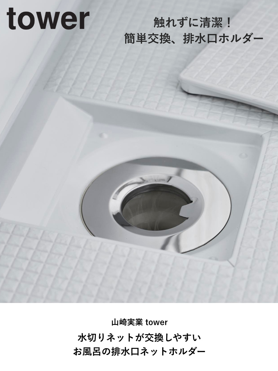 水切りネットが交換しやすい 風呂 お風呂の排水口 排水口ネット yamazaki towerシリーズ 山実 YAMAZAKI 山崎 やまじつ シンプル スタイリッシュ 浴室 排水口用 排水 浴室用 水切り網 ネット受け 髪の毛 ゴミ受け ネット交換 簡単装着 簡単交換 取っ手付 衛生的 清潔 ステンレス 水回り 掃除 排水溝 ぬめり防止 掃除楽々 付替簡単 着脱簡単 交換しやすい スムーズ 交換 時短 簡単 風呂排水 髪の毛対策 髪 髪の毛受け 排水口 ネットホルダー お手入れ簡単 ステンレス製 LH20302