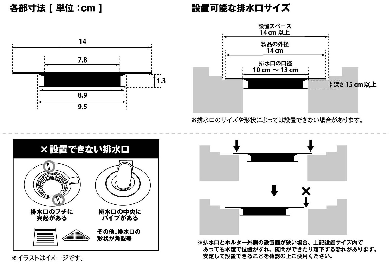 ※万一のケガを防ぐため、必ず排水口カバーを設置してご使用ください。