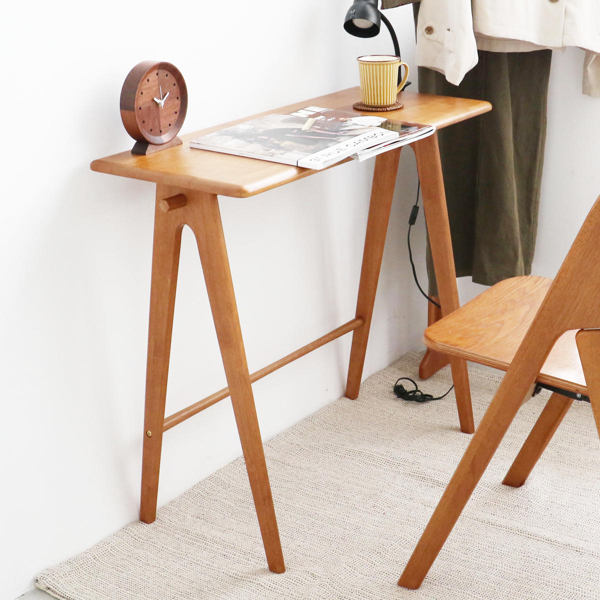 天然木のぬくもり感じるデスクです。幅80cmのコンパクト設計で、リビングの一角や玄関横など、限られたスペースにもすっきり収まります。直線を基調としたシンプルなフォルムにナチュラルな木目と軽やかなデザインが調和し、空間に上品なアクセントを添えます。