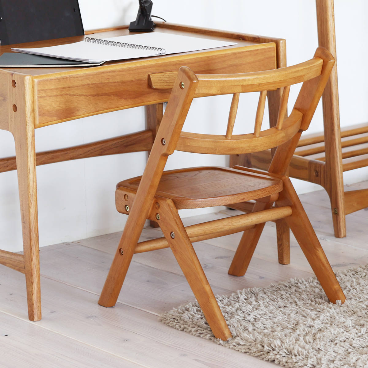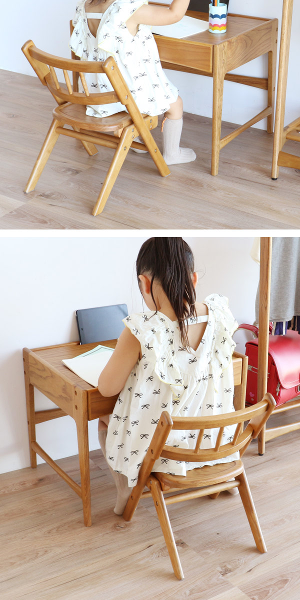 ●上質な木目が際立つ、天然木のキッズチェアです。