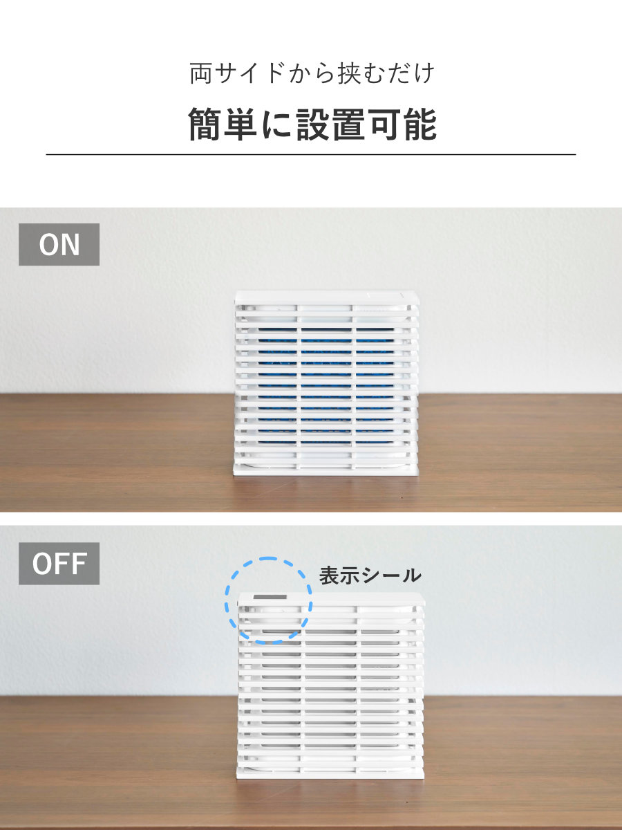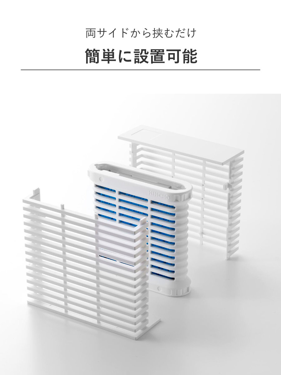 ●置き型蚊取りを両サイドから挟むだけで工具不要で簡単に設置できます。