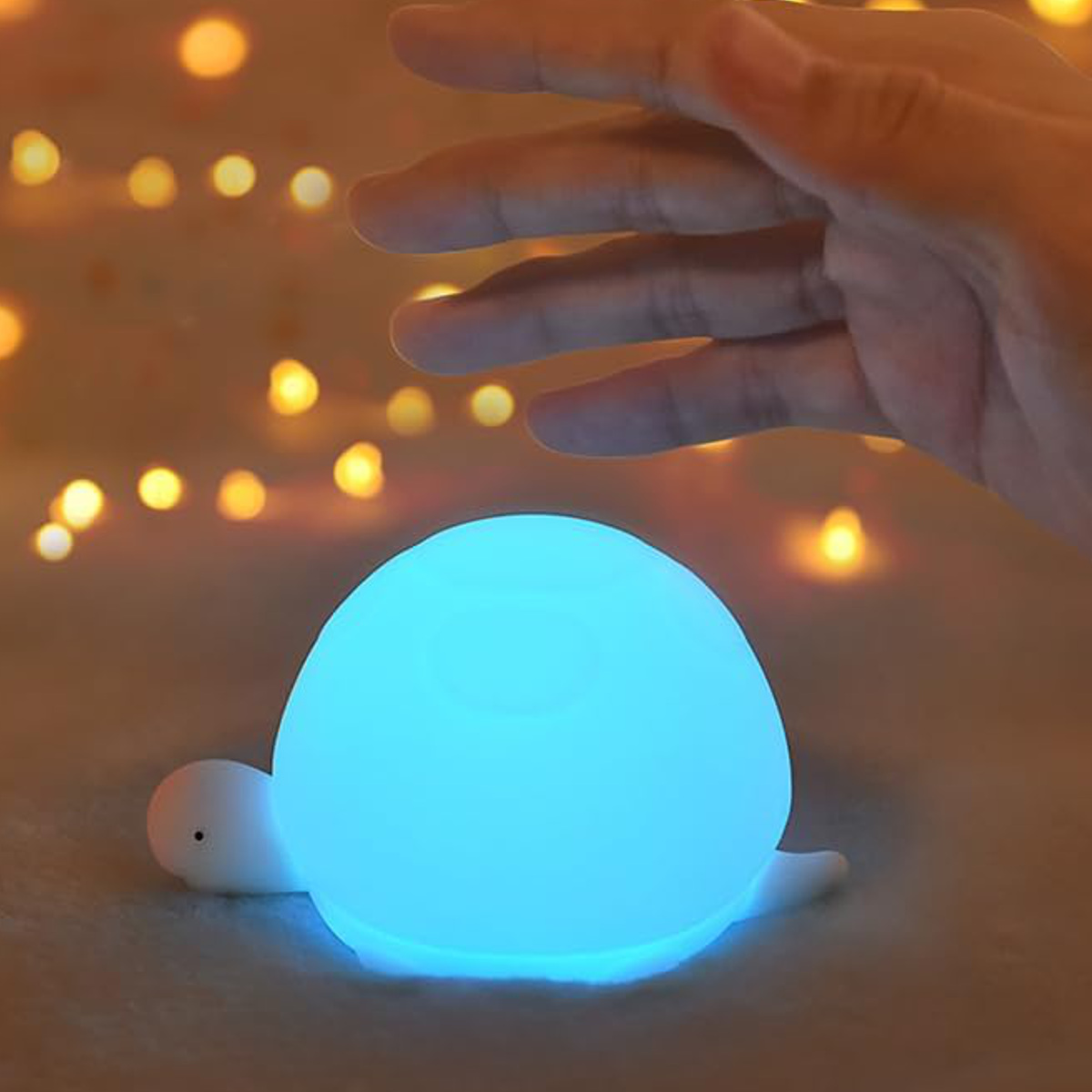 赤ちゃんにも安心な触り心地調節できるやさしい明りなので、夜間のおむつ替えや授乳時のナイトライトとしても活躍します。シリコン製でとてもやわらかい手触りなのでお子さまが触っても安心です。
