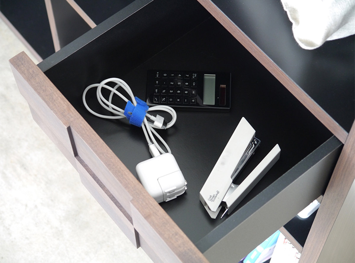 | 材質 | 天板:強化紙 引出し前板:アルダー無垢材(オイル塗装) 本体:プリント紙 |