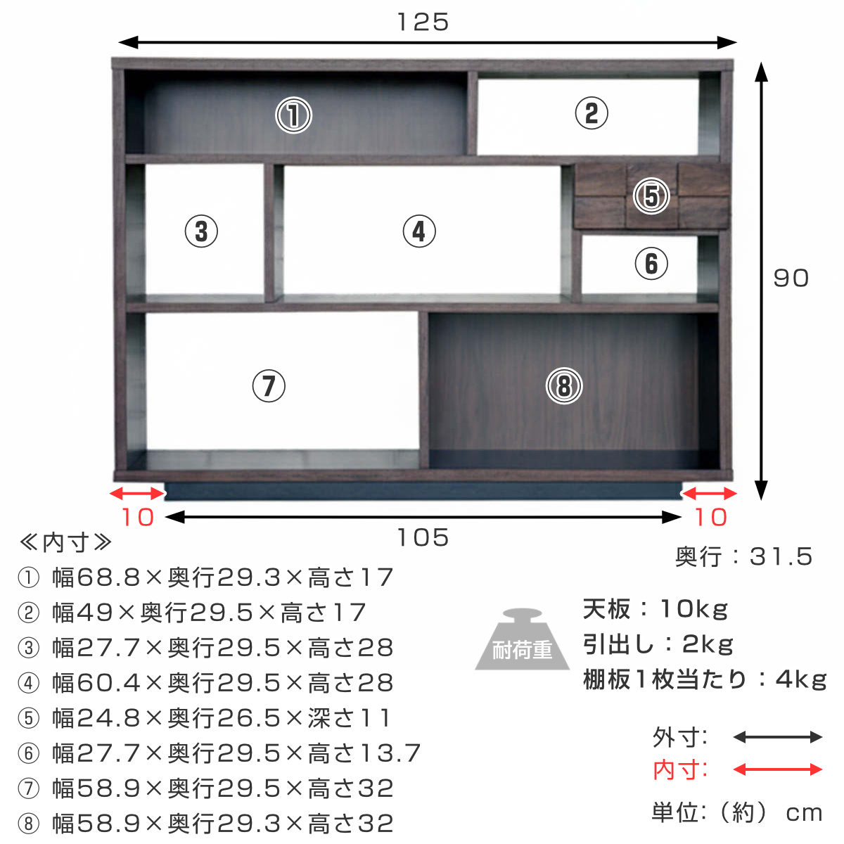 | 天板耐荷重 | 10kg |