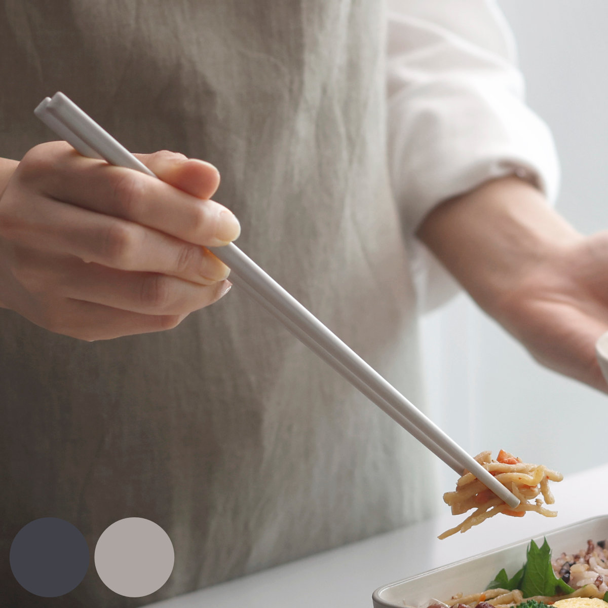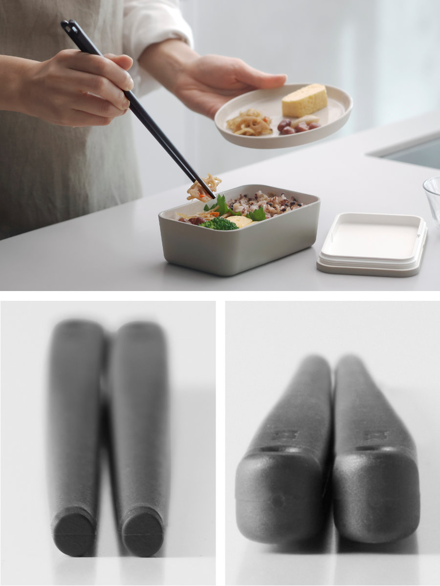 ●丸みのある四角から円に変化するグラデーション形状で箸同士がからみにくく作業しやすい設計。