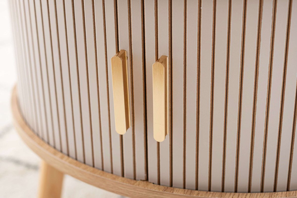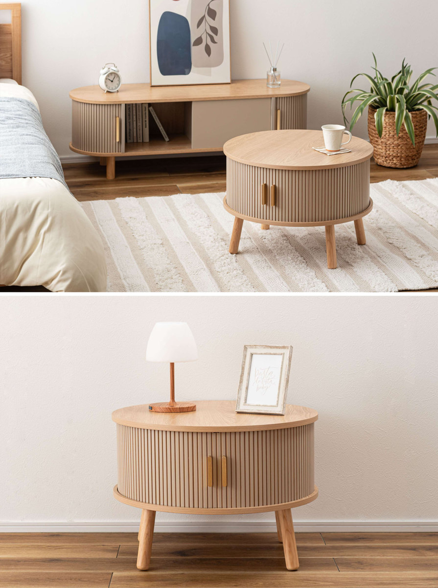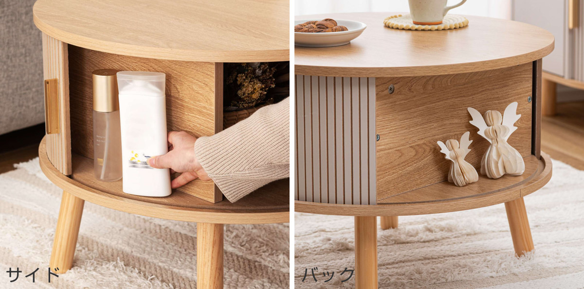 お部屋をスッキリ見せられる、収納付きリビングテーブルです。表情豊かなリブデザインの扉が、生活感の出やすい小物をおしゃれに隠します。