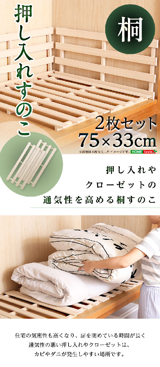 湿気に負けない、桐のチカラで押し入れを快適空間に●天然木桐を使用した、押し入れ用すのこ2枚セットです。