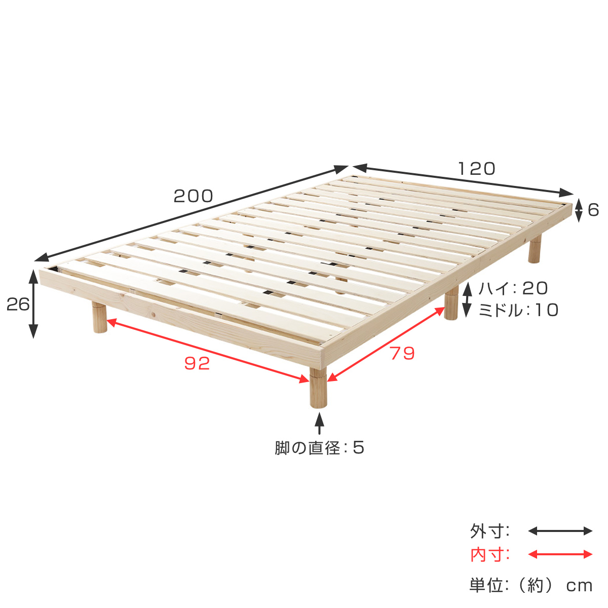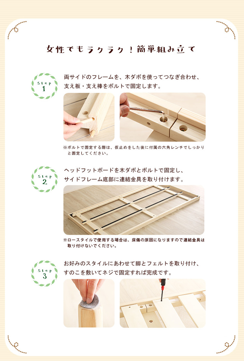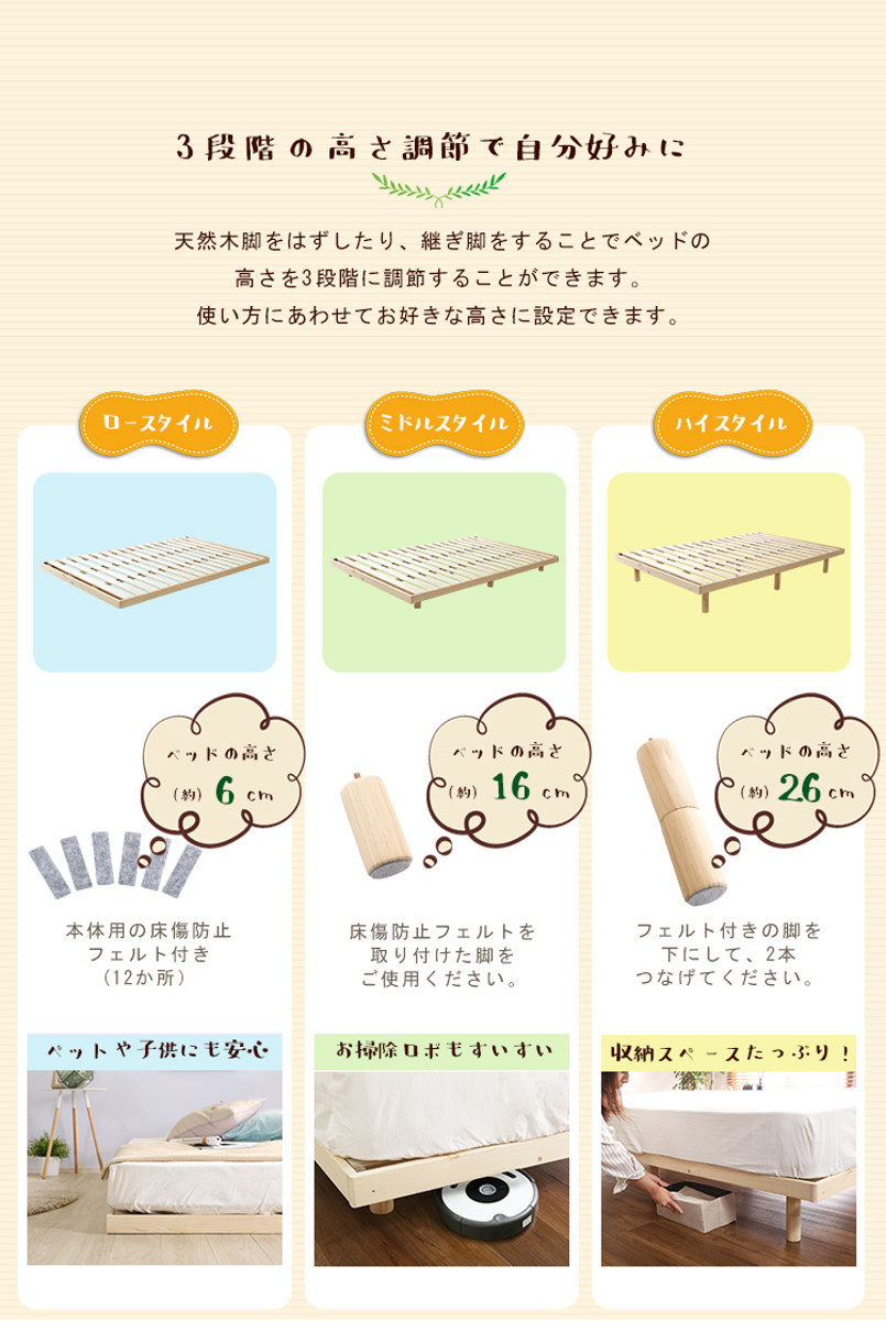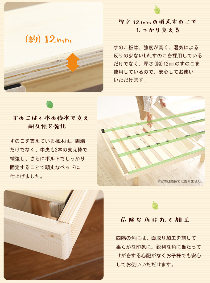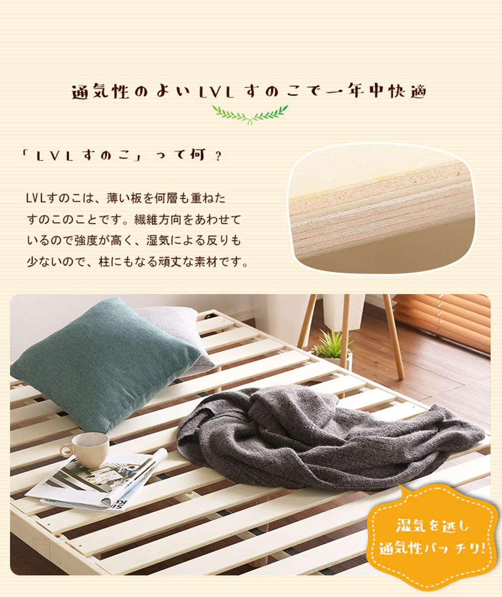 | 材質 | フレーム:天然木(パイン材) すのこ:積層合板(LVL) |