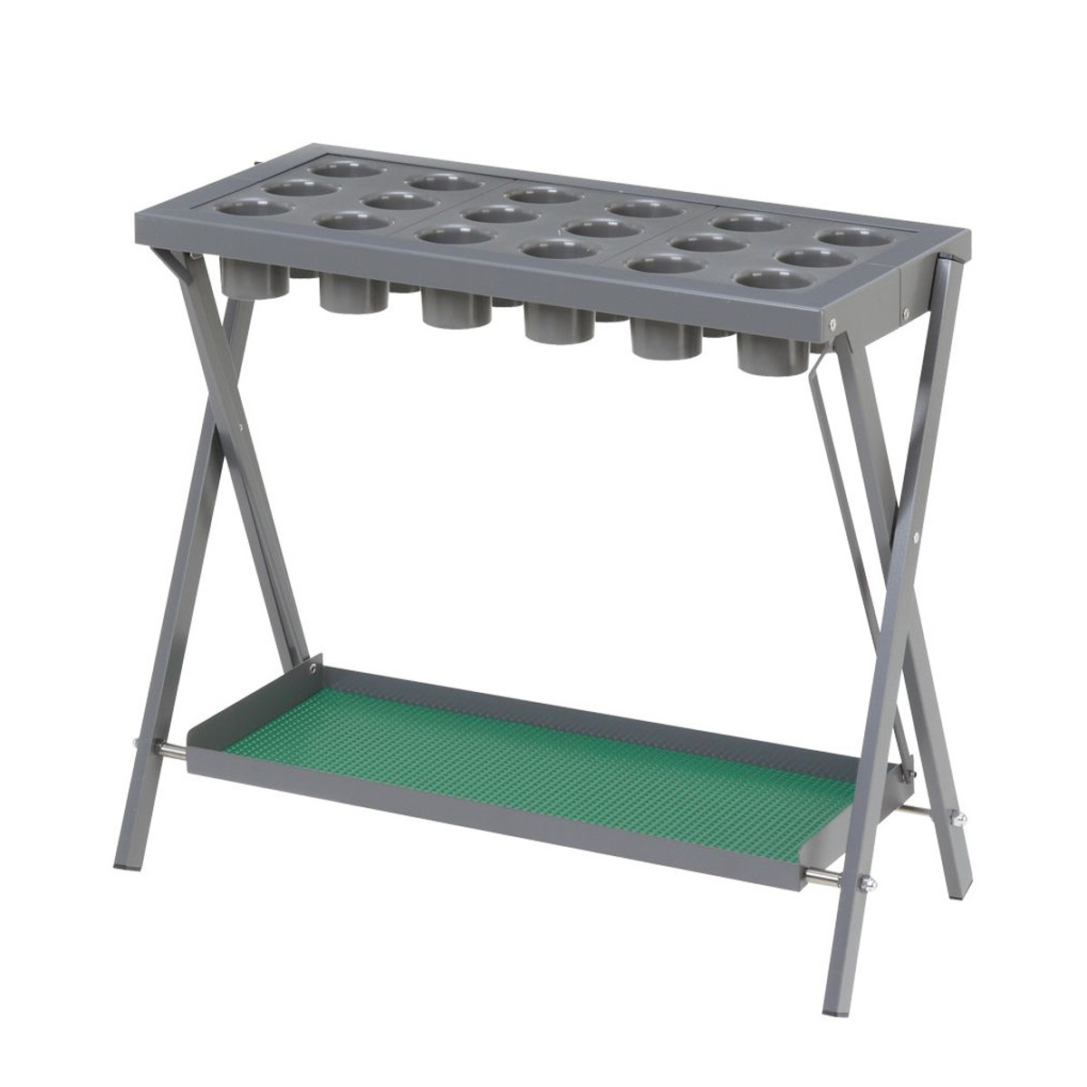 使いやすい折りたたみ式の傘立て 18本立スチールと樹脂を組み合わせた、折りたたみ式の傘立てです。傘枠には仕切り筒が付いており、傘がスムーズに出し入れできます。病院、公共施設、ホテル、小売店舗、工場、学校、オフィスなどにおすすめです。