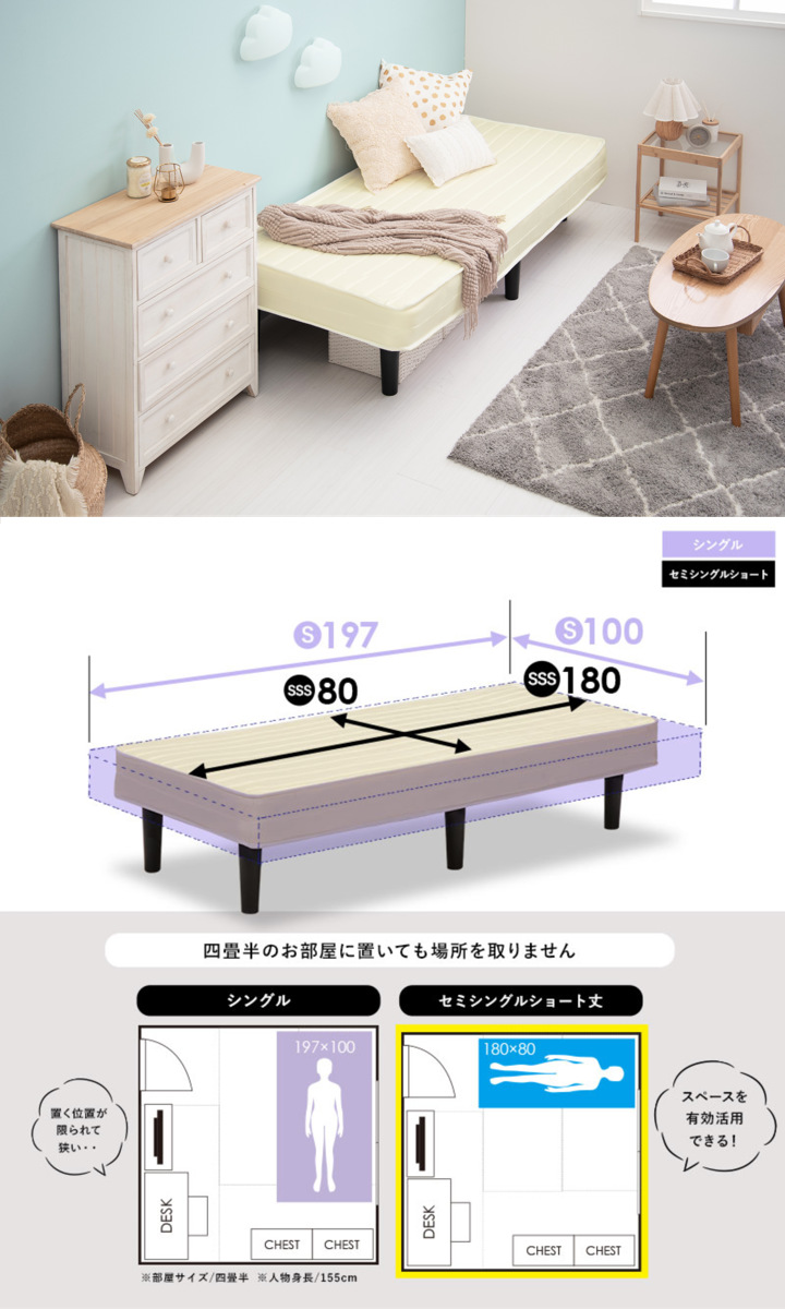 ![]() ショートセミシングル 【▲このページの商品】 | ![]() シングル | ![]() セミダブル |