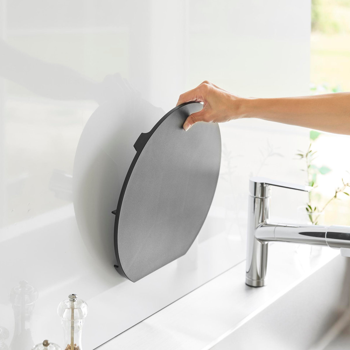 マナイタ 俎板 食洗機対応 抗菌まな板 磁石 半円 円形 丸まな板 4903208106252 yamazaki towerシリーズ 山実 YAMAZAKI 山崎 やまじつ 白 黒 モノトーン 無地 シンプル スタイリッシュ ホワイト ブラック LH14615 LH20302 LH4947