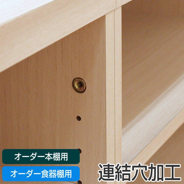 | 備考 | ※本体と上置き棚の加工は別途料金が必要です。 ※連結する場合、連結する本体と上置き棚の全てに穴加工が必要です。 ※連結穴の位置指定は承っておりません。 |