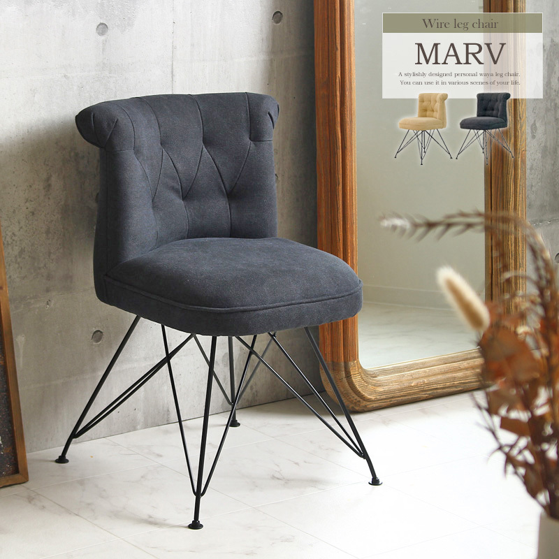 経年変化でブラックが色褪せた様な風合いを再現したダークグレー。ワイヤーレッグも含めダークトーンで統一された色合いは、シックで落ち着きのある空間を演出します。