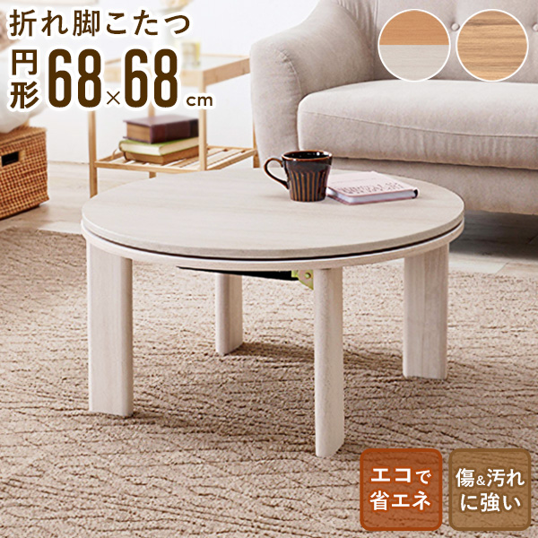 ダイニングテーブル 円卓 コタツ 炬燵 春 夏 秋 冬 オールシーズン 折り畳み 直径68cm 隙間収納 リバーシブル あったか 省エネ モネ 新生活 子供部屋 木目調 ホワイト ナチュラル