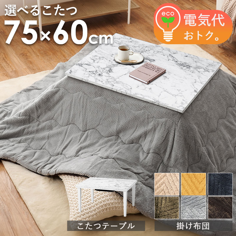 こたつ こたつ布団 長方形 こたつセット コタツ こたつテーブル おしゃれ シンプル 北欧 テーブル 洗える 新生活 一人暮らし コンパクト 幅75cm 大理石調 爆買