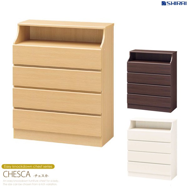 女性でも安心の、かんたん組み立て式木製チェスト"チェスカ"。新技術の採用で作業工程が短縮され、従来の組み立て時間の約半分で作ることができます。小物の整理に便利なオープン部と、取手のないスタイリッシュなデザインがモダンな印象。溢れる木質感が北欧テイストにもぴったりです。置きたい場所にぴったり選べる豊富なサイズバリエーションも魅力です。