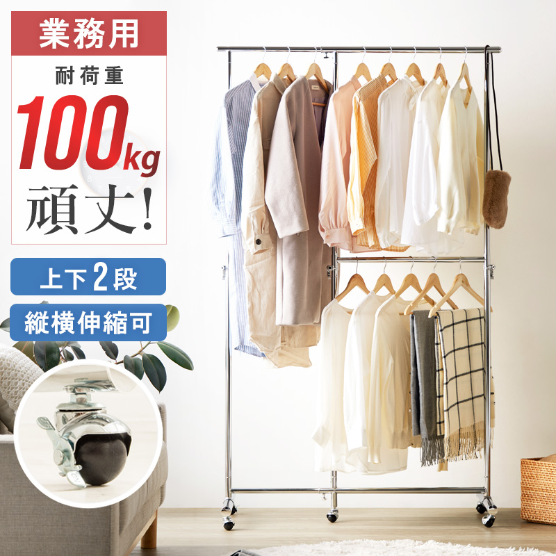 商品名2段収納タイプ 頑丈ハンガーラック 幅78〜131cm type-WL