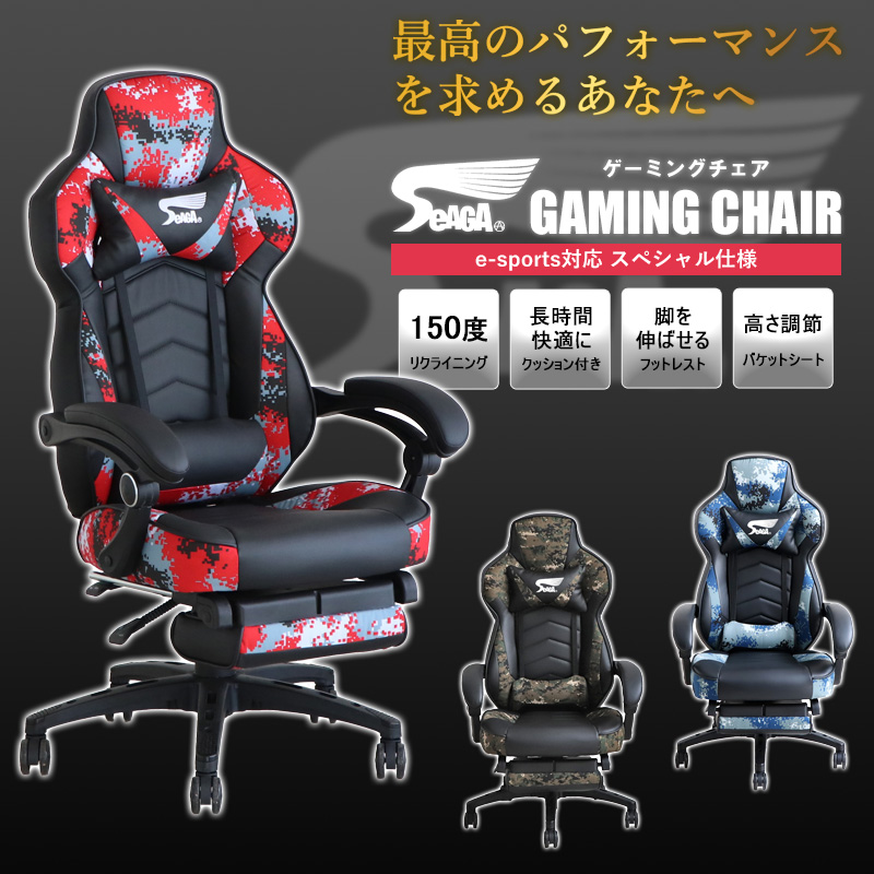 おすすめポイントeスポーツブランド「SeAGA」は佐賀県eスポーツ協会監修のゲーミングブランドです。プレイヤーのリアルな声をヒヤリングし細部までこだわったデザインで、実際のeスポーツ大会に採用されることを前提としたスペシャルな設計となっています。長時間のプレイも疲れにくい極厚座面使用で、快適なプレイ環境を提供。最高のパフォーマンスを求めるあなたにオススメのゲーミングチェアです。