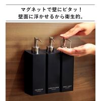 浴室の壁にマグネットで取り付けることのできる詰め替え用ディスペンサー。壁面に浮かせるので水切れも良く衛生的、収納ラックも使わないので浴室のスペースを有効活用できます。