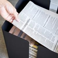 四つ折りの新聞をサッと収納できる。四つ折りにした新聞が収納できるサイズです。四方向に隙間が空いているので、新聞を取り出しやすいデザインになっています。