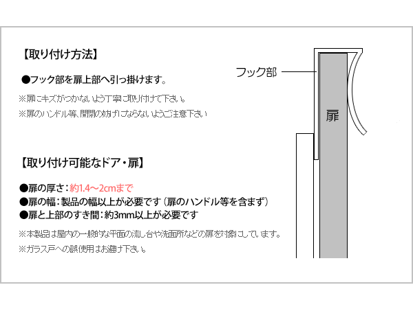 取付可能なドア・扉扉の幅:約16cm以上(扉のハンドル等を含まない)