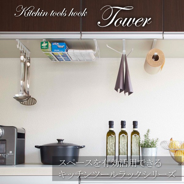 戸棚下キッチンペーパーホルダー タワー tower 戸棚下 キッチンペーパー 収納 省スペース おしゃれ シンプル 白 ホワイト ブラック 7115 7116 山崎実業 公式