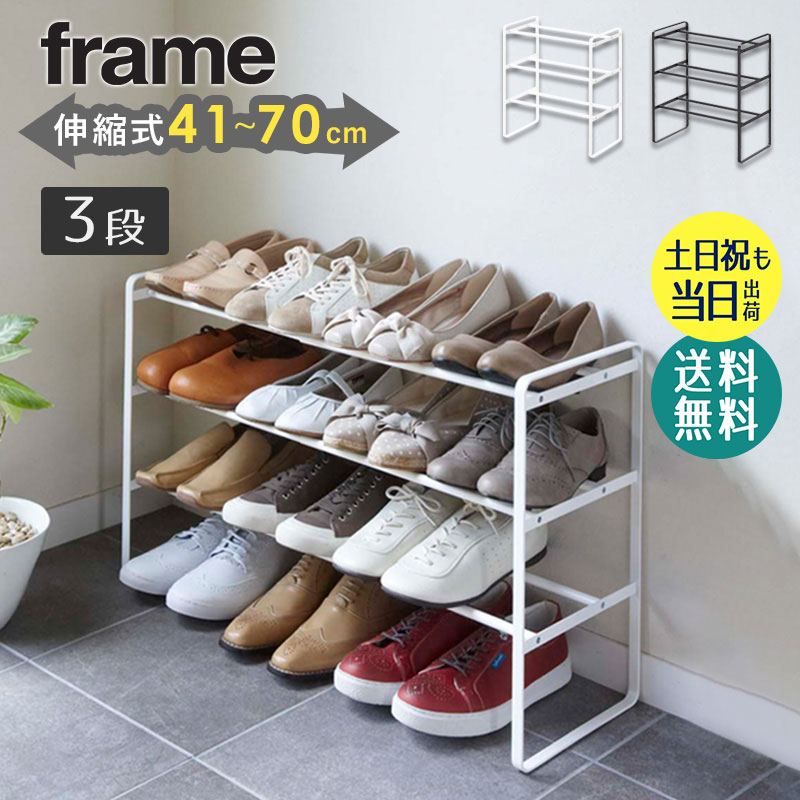 伸縮シューズラック 3段 フレーム 山崎実業 公式 frame シューズラック スリム おしゃれ 靴収納 下駄箱 玄関収納 yamazaki ブラック ホワイト 7555 7556 爆買