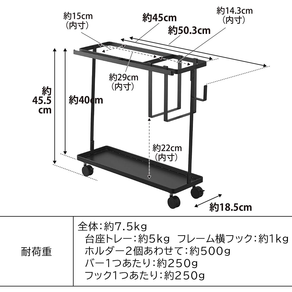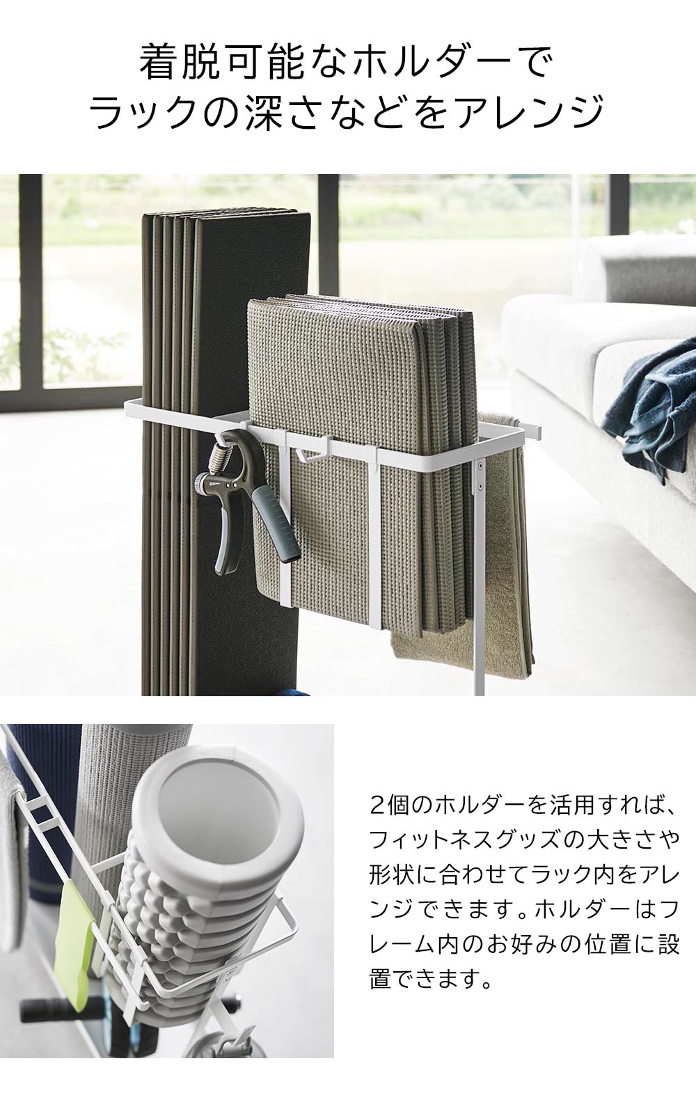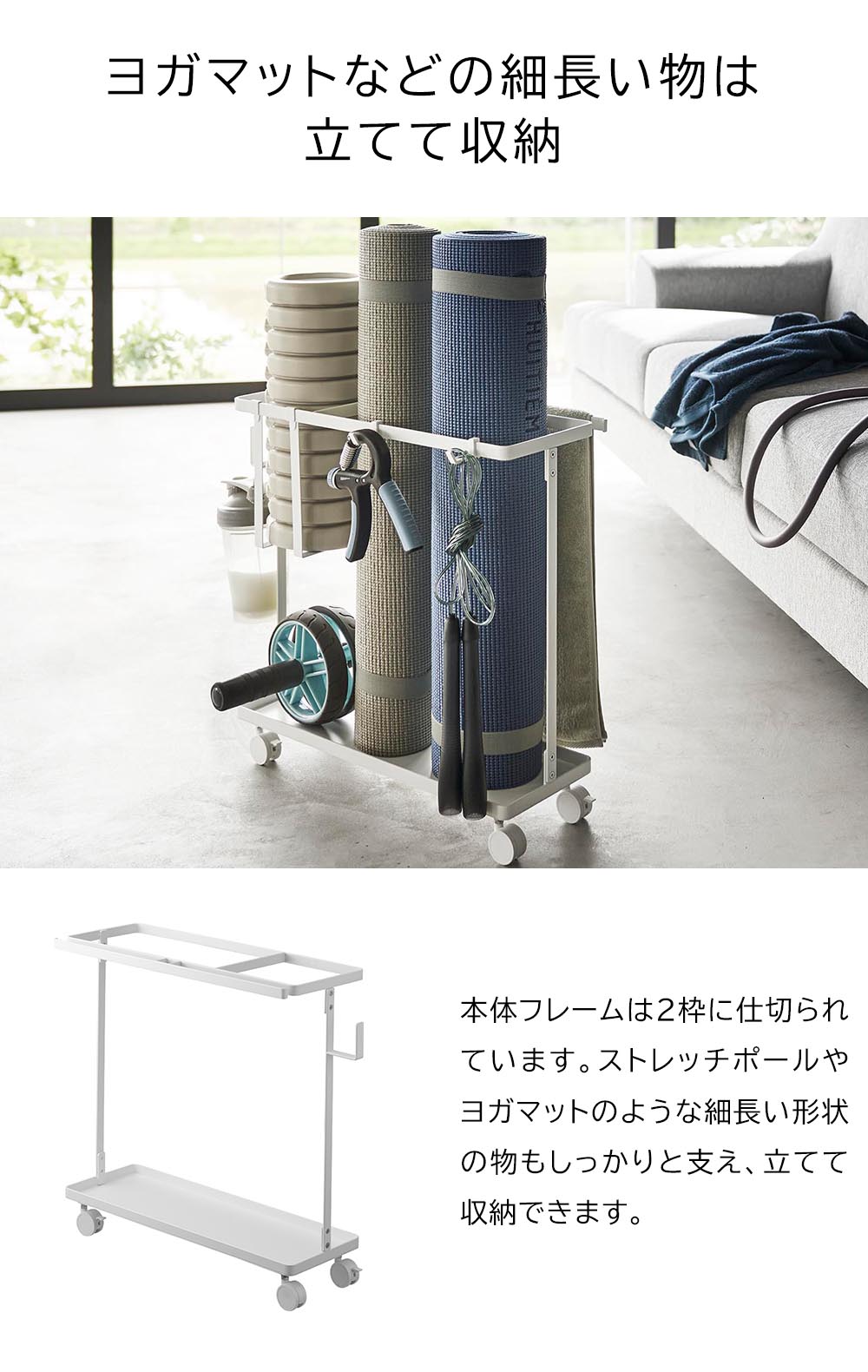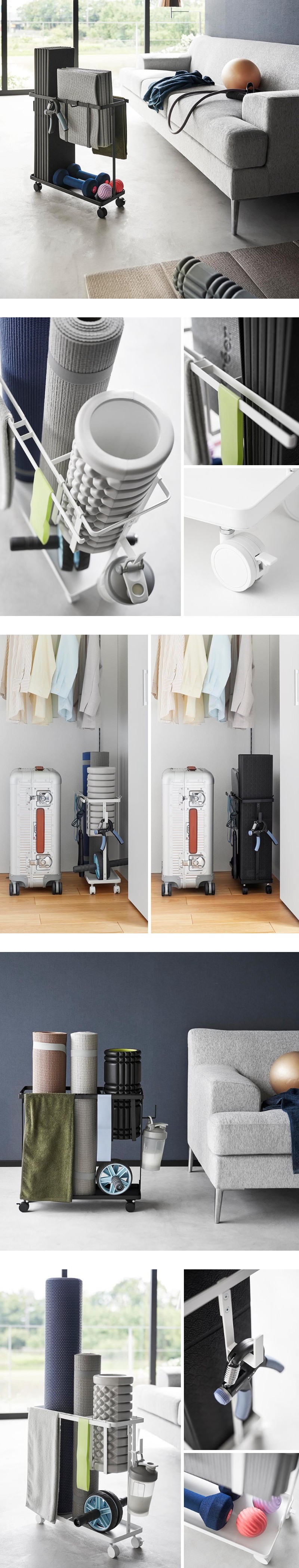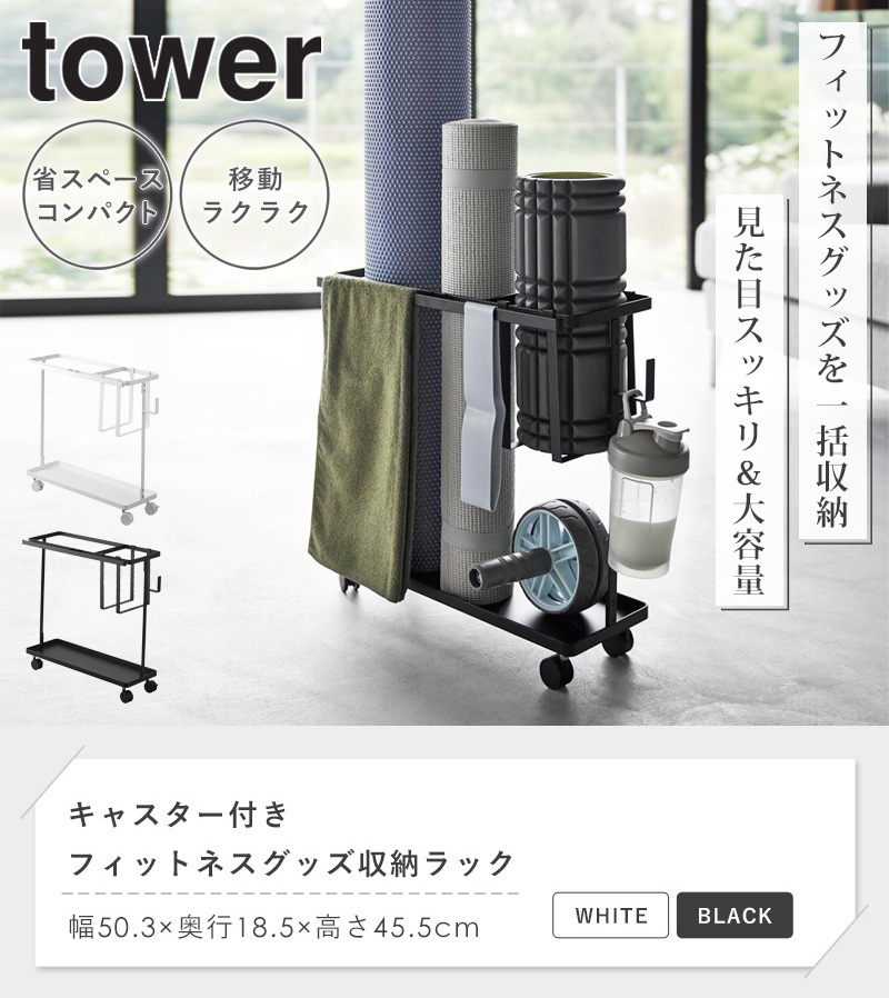 ![]() 嵩張るフィットネスグッズを スリムなラックに一括収納! キャスター付きで移動も簡単 ヨガマットにフォームローラー、ダンベル、腹筋ローラー。形も大きさもバラバラなフィットネスグッズの置き場に困っている方も多いのではないでしょうか?このラックは、それらを一括収納でき、コンパクトに収納できるフィットネスグッズ専用の収納ラックです。 2枠に仕切られたフレーム内には、ストレッチポールやヨガマットなどを立てて収納できます。台座トレーは、ダンベルやマッサージボールなど小さな物を収納するのに便利です。 収納ラック外側には、タオルなどを掛けておくことができるバーや、ドリンクホルダーやアームバーなどが掛けられるフックがついており、引っ掛け収納にも対応しています。お好みの位置に取り付けられる付属のフックも使用すれば、更に収納力がアップします。 また、着脱可能なホルダーを活用することで、フィットネスグッズの形状に合わせてラック内をアレンジできます。 ![]() ![]() ![]() ![]() ![]() ![]() ![]() ![]() ![]() ![]() ヨガマットの収納に便利!シンプルなハンガータイプはこちら マット以外にもトレーニンググッズが収納できる便利な【フック付き】はこちら商品名 キャスター付きフィットネスグッズ収納ラック tower/タワー カラー ホワイト/ブラック サイズ 約幅50.3×奥行18.5×高さ45.5cm(キャスター含む) 商品重量 約2300g 材質 本体・ホルダー:スチール(粉体塗装) キャスター:ナイロン 仕様 耐荷重:全体約7.5kg(台座トレー:約5kg、フレーム横フック:約1kg、ホルダー2個あわせて:約500g、バー1つあたり:約250g、フック1つあたり:約250g) 付属品:六角レンチ、スパナ、フック×2 生産国:中国 お客様組立品 配送について 玄関先お届け 配達日時指定可 備考 沖縄県全域/離島への配送は別途送料が必要です(※送料は当店へご確認ください)