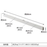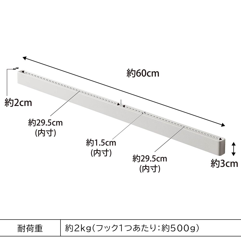 商品名 石こうボード壁対応マグネット用スチールバー tower/タワー カラー ホワイト/ブラック サイズ 外寸:約幅60×奥行2×高さ3cm 内寸:隙間1つあたり:約幅29.5×奥行1.5cm、スリットの間隔:約幅40cm 商品重量 約710g 材質 スチール(粉体塗装) 仕様 耐荷重:約2kg(フック1つあたり:約500g) 付属品:石こうボードピンセット×2、木ネジ×2、フック×4 生産国:中国 お客様組立品 取り付け可能な壁面 石こうボードピン使用時:壁紙・布壁紙・ビニール壁紙貼りなどの石こうボード・薄ベニヤ 木ネジ使用時:柱・板壁(厚さ1cm以上)・プリント合板(裏側に水平にサンがある場所)・裏側に下地材(間柱)が入っている壁・木枠(幅1.5×厚さ2cm以上) ご注意 マグネットは付属しておりません。 配送について 玄関先お届け 配達日時指定可 備考 沖縄県全域/離島への配送は別途送料が必要です(※送料は当店へご確認ください) ![]() ![]() | ||||||
