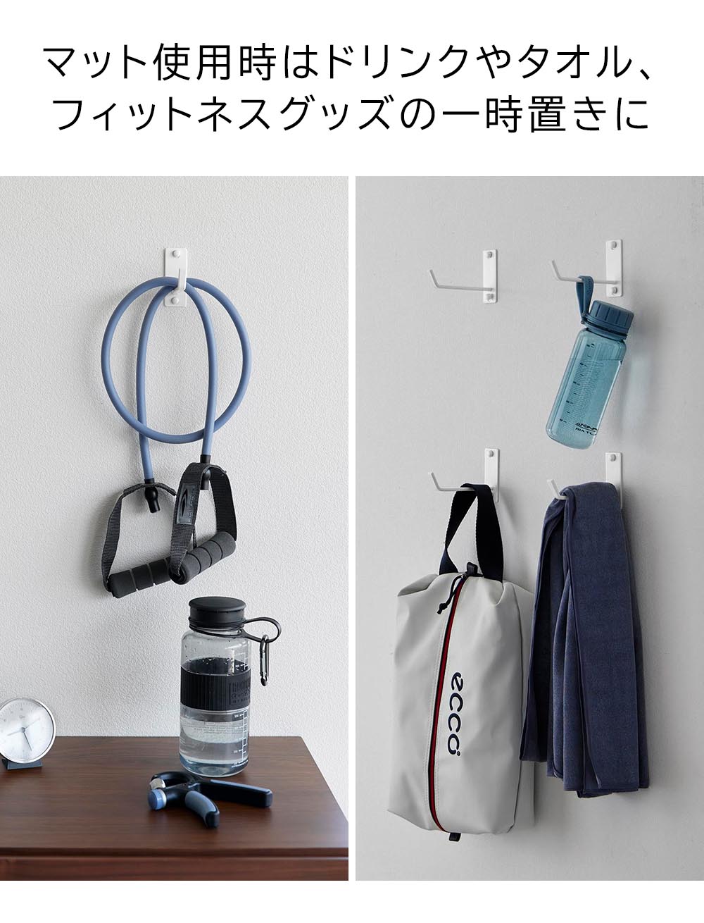 マット以外にもトレーニンググッズが収納できる便利な【フック付き】はこちら