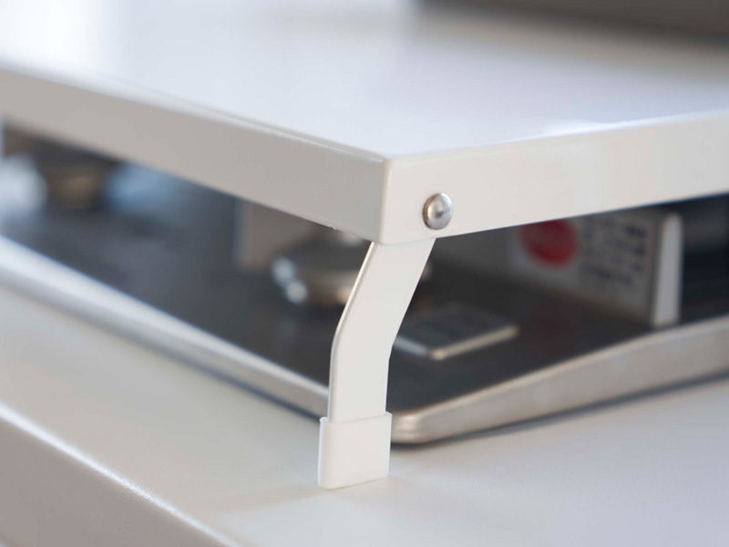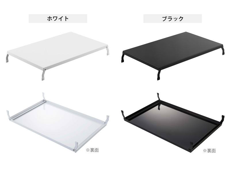 コンロ上に設置して収納・作業スペースになる便利なアイテム。脚部はストッパー付きで倒れにくい構造です。