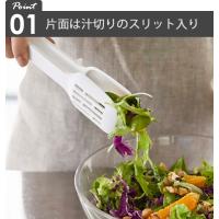 片面はスリットがあるので、サラダの水切りもラクラク。また、熱に強いので揚げ物を掴んだり、焼魚を返したりと様々な調理シーンで活躍します。