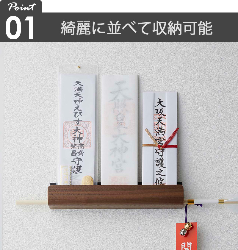 置き場所に困っていたお札や破魔矢を定位置に!天然木があたたかい印象を与える、RINシリーズの神札ホルダー。