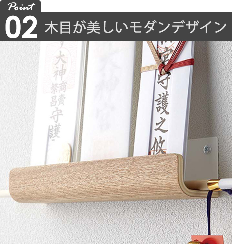商品説明天然木があたたかい印象を与える、RINシリーズの神札ホルダー。神棚が置けないご家庭には、限られた場所でも設置が可能な壁掛けタイプの神札ホルダーが便利。 どなたでも木ネジで簡単に取り付け可能です。
