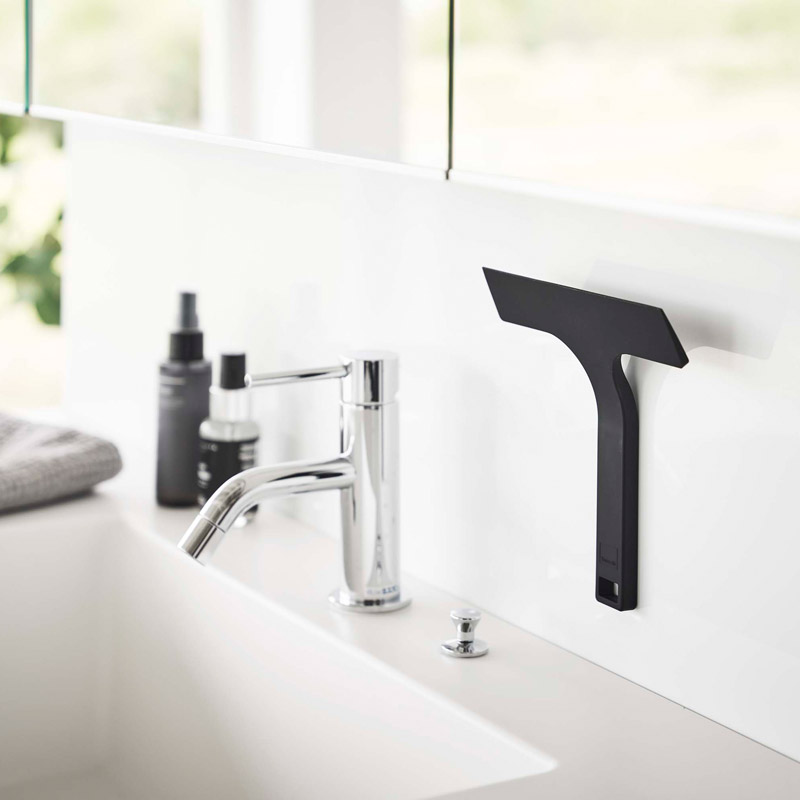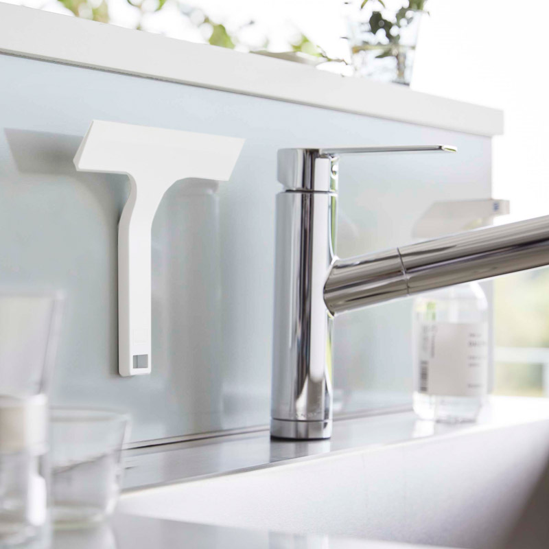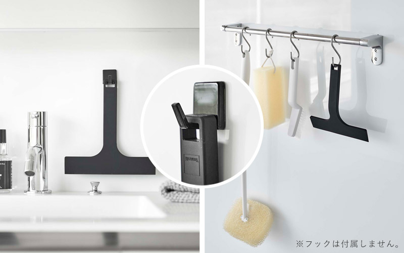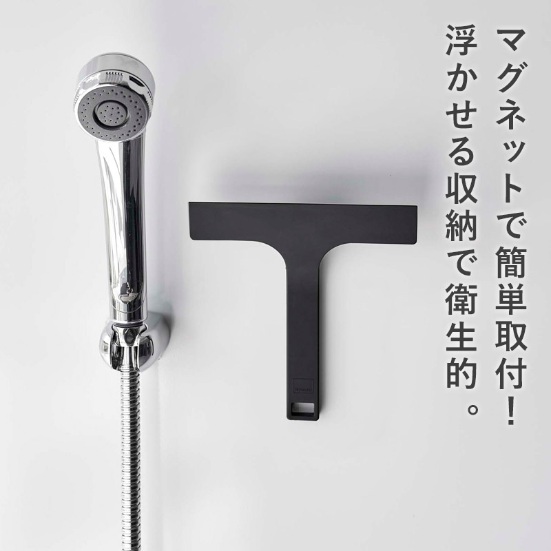 磁石の力で浮かせて収納マグネットの付く壁面ならどこでも取り付けられ、取り外しや位置の調節も簡単。お風呂上がりにササッと「ついで掃除」するのにぴったりです。