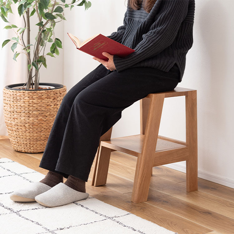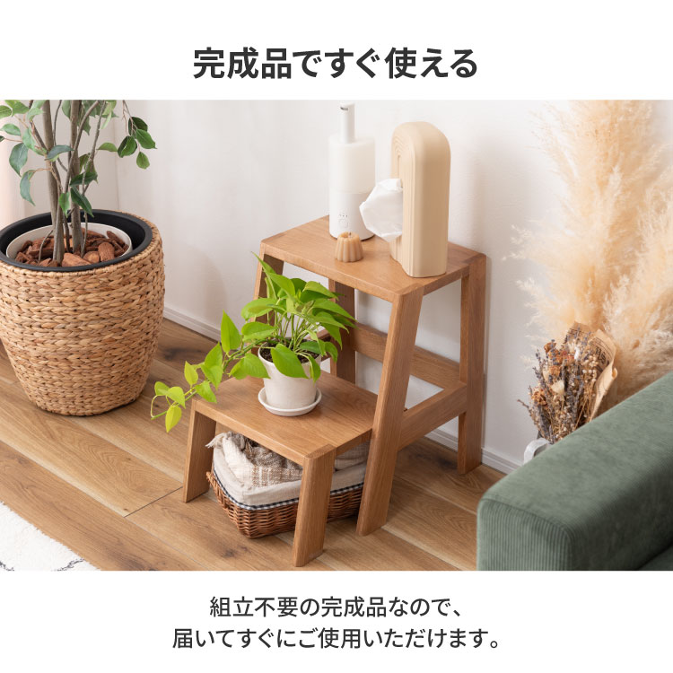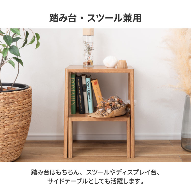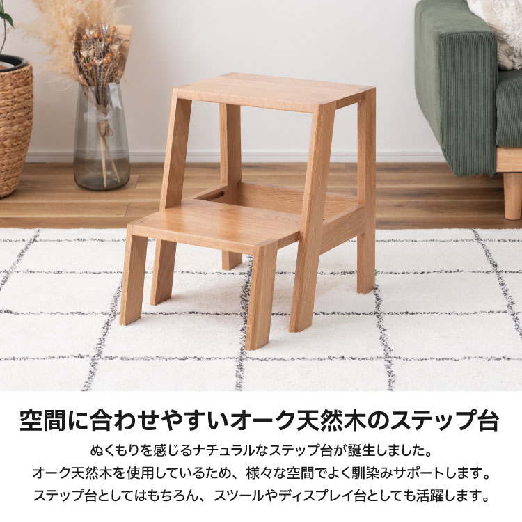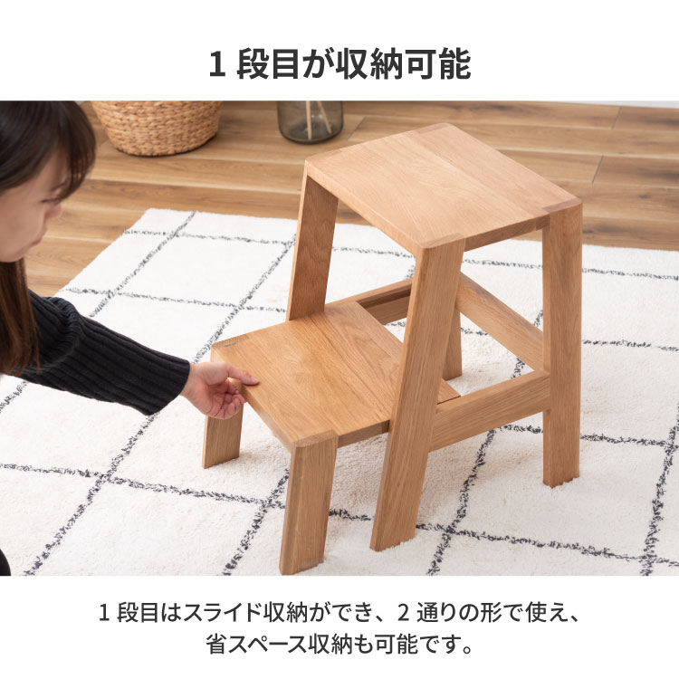 | 商品説明 | 天然木オークのぬくもりを感じるステップ台。ステップ1段目はスライド収納でき、省スペースで片付け可能。踏み台としてはもちろん、スツールやディスプレイ台、ベッド横やソファ横のサイドテーブルとしても活躍します。 |